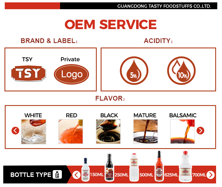 TSY предлагает услуги по производству оригинального оборудования (OEM) и оригинального производства дизайна (ODM) для производства уксуса. И у нас также есть множество уксусов для клиентов на выбор.