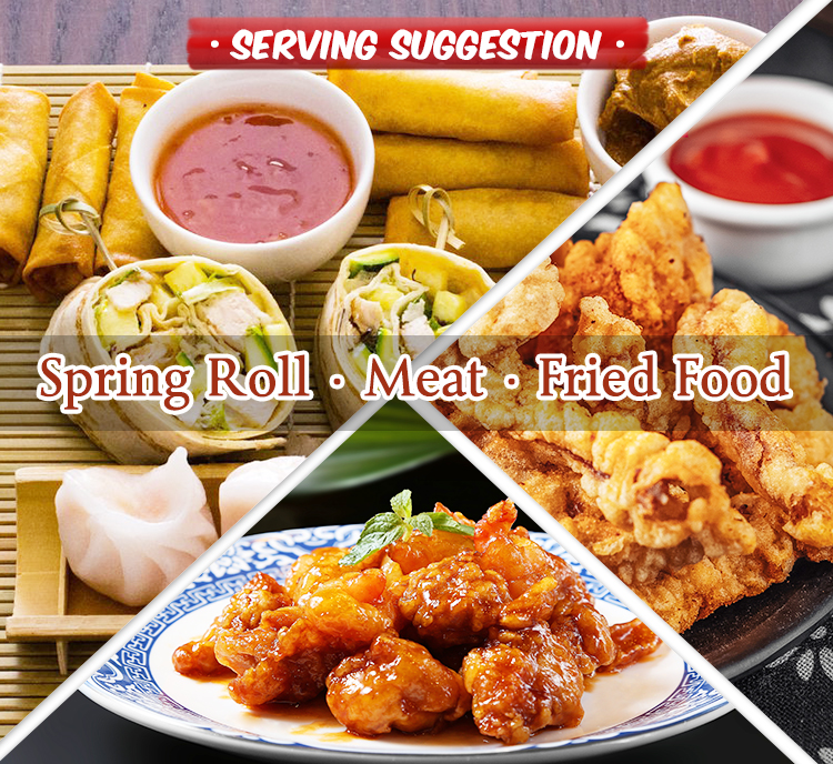 Этот универсальный соус обычно используется в качестве глазури для жареных блюд, таких как сладкая и кислая курица, свинина или креветки, а также соус для погружения для весенних рулонов и хрустящих Wontons. Некоторые версии включают в себя сладкий перец, лук или ананасовые куски для дополнительной текстуры.