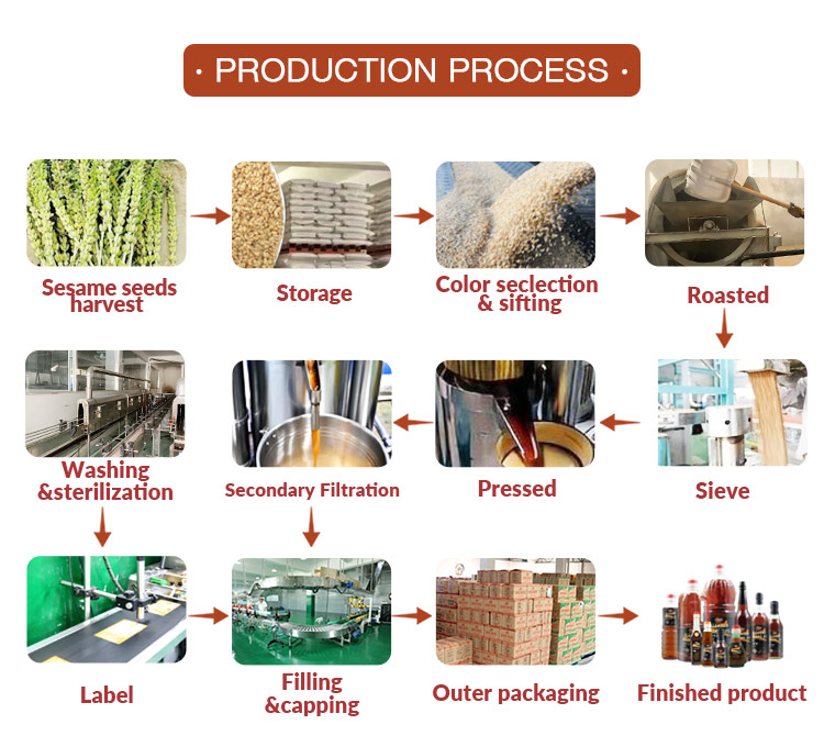 Чистое физическое прессование: высококачественное кунжутное масло в основном производится путем физического прессования (например, методом замены воды для кунжутного масла мелкого помола) без использования химических растворителей, что позволяет максимально сохранить натуральный вкус и питательные вещества кунжута.